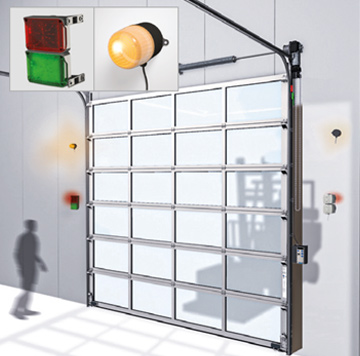 Aby se zabránilo zranění osob a poškození dveří nebo zboží, jsou na vnitřní a vnější straně dveří umístěny světelné signály a blikající majáky. Rotující blikající světla varují před nebezpečím. Spustí se dříve, než se vrata pohnou. Světelná signalizace reguluje průjezdní dopravu. Zabraňují poškození vrat.