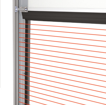 Průmyslová sekční vrata lze také vybavit volitelnou světelnou mřížkou. Světelná mřížka se skládá z vysílače a přijímače a je z výroby namontována v kolejnicovém systému, což znamená, že kabeláž není vidět.