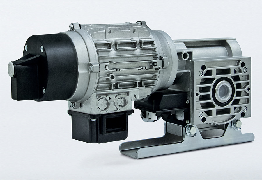 Bezúdržbová, zcela olejotěsně zapouzdřená šneková převodovka - namontovaná přímo na ocelové hřídeli osy trubky, s výrazně nižšími náklady na instalaci a údržbu ve srovnání s jinými uspořádáními. Integrovaná bezúdržbová, samokontrolní a na poloze nezávislá bezpečnostní převodovka, jakož i zapouzdřená jednotka koncového spínače s přesně nastavitelnými koncovými a bezpečnostními spínači s přírubou namontovanými přímo na převodovce.