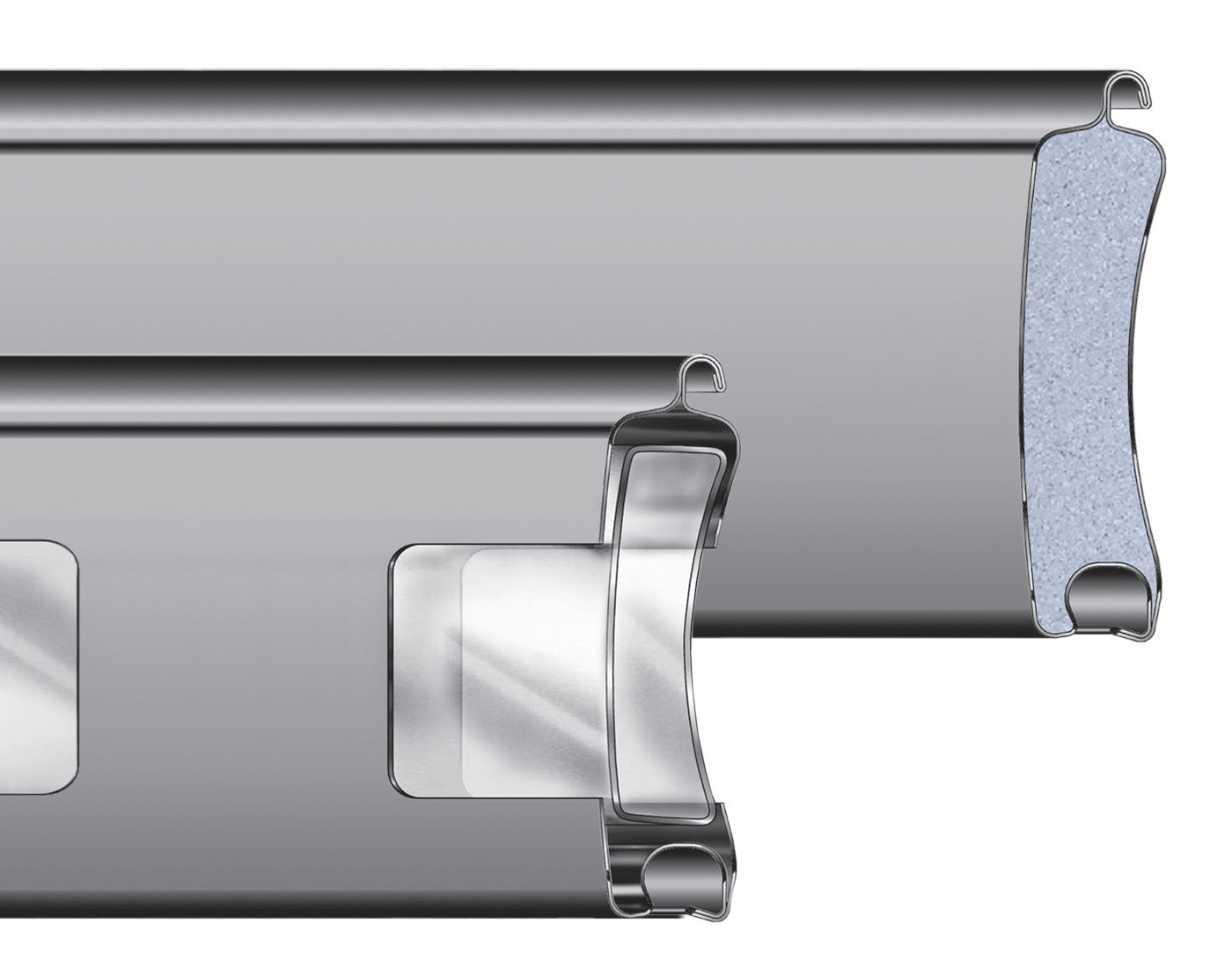 Trubkový válec: Vyroben z oceli, opatřen základním nátěrem, dimenzován podle přípustného průhybu 1/500 své délky, s minimálním průměrem 168 mm pro lepší navíjení závěsu.
