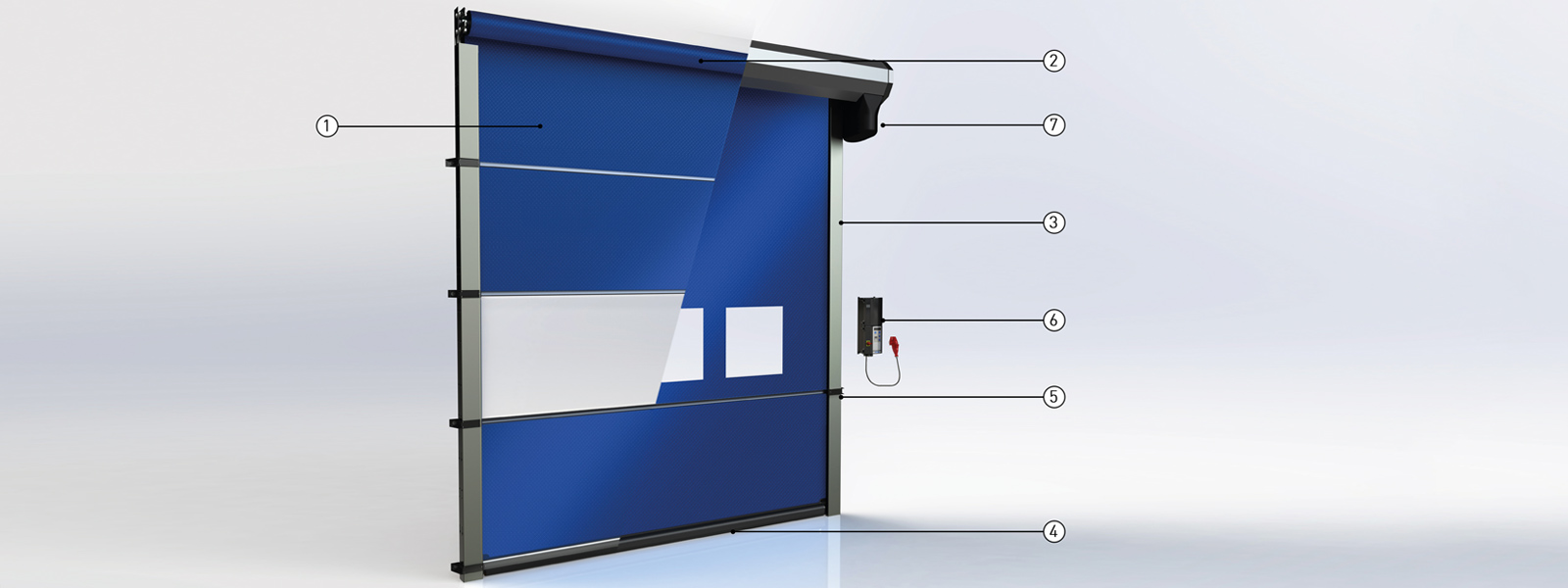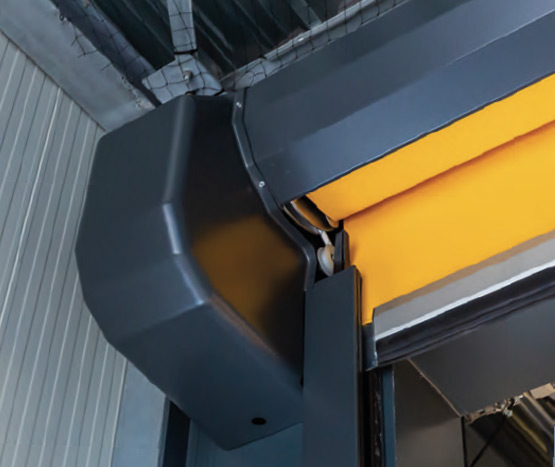 [3] Robustní kolejnice jsou vyrobeny z pozinkovaných ocelových profilů Sendzimir. Integrovaná boční těsnění jsou speciálně přizpůsobena pro příslušné použití a zajišťují vedení dveřní clony bez průvanu. Kolejnice, hřídel a držáky tvoří stabilní předem smontovanou konstrukci.