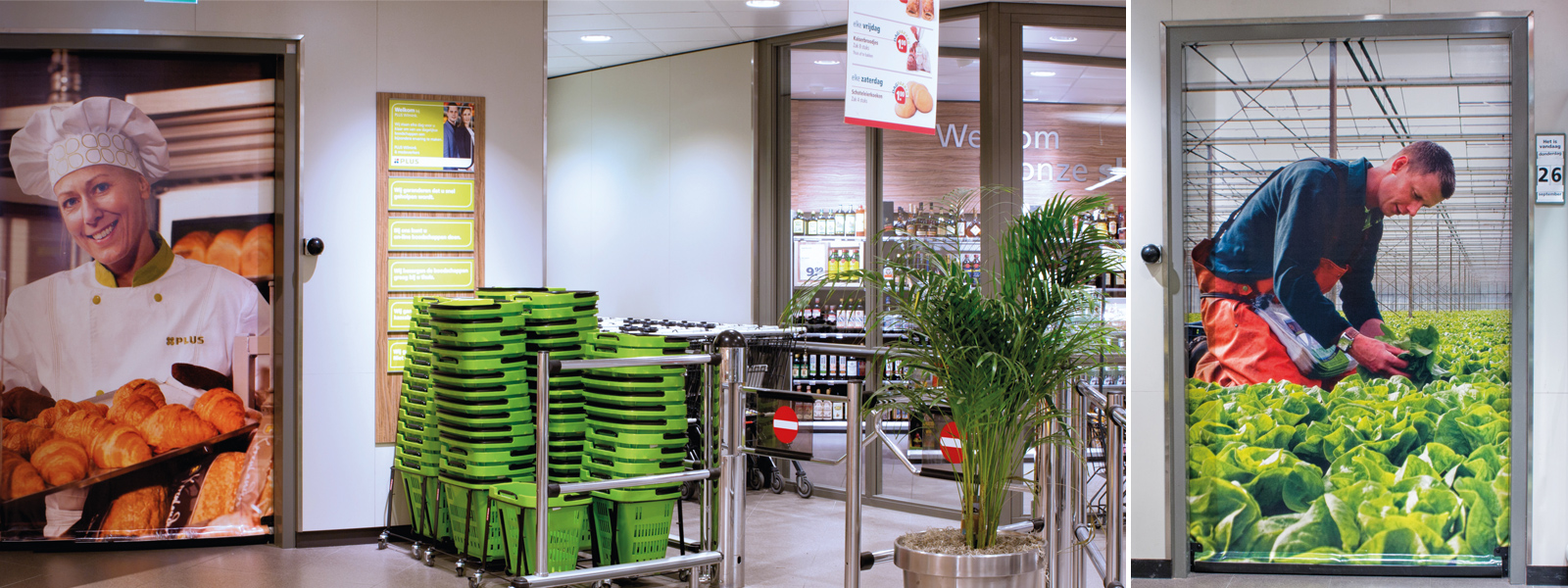 Několik známých řetězců supermarketů standardně používá potištěné roletky SpeedRollers, které ovlivňují atmosféru v prodejním prostoru a zprostředkovávají firemní image.