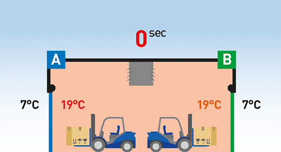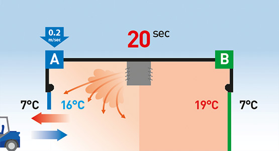 Studie Technické univerzity v Mnichově prokázaly, že používáním rychloběžných dveří a zamezením dlouhého otevírání lze snížit dodatečnou potřebu vytápění až o 30 %!