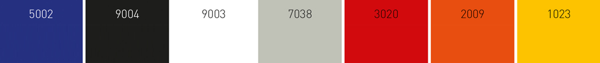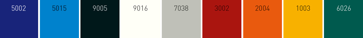 Standardně se dodává v gramáži 900 g/m2 a v následujících barvách RAL: