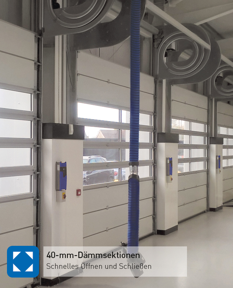 V AUTOMOBILBRANCHE výrobní linky často vedou z jedné haly do sousední. Rychloběžná vrata pomáhají udržovat klima v halách a pomáhají šetřit energii, zároveň oddělují jednotlivé prostory od sebe, takže se nemůže šířit prach, nečistoty a hluk. Rychloběžná vrata jsou integrována do systému řízení procesů, aby byla zajištěna nepřerušovaná výroba.