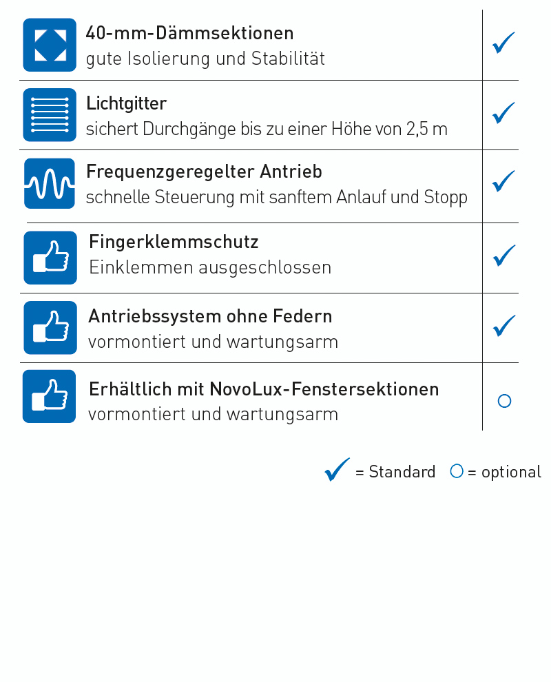 - RYCHLOST: křídlo vrat je poháněno patentovaným systémem řetěz/ocelové lanko, který zajišťuje bezkonkurenčně vysokou rychlost chodu vrat NovoSpeed Thermo.