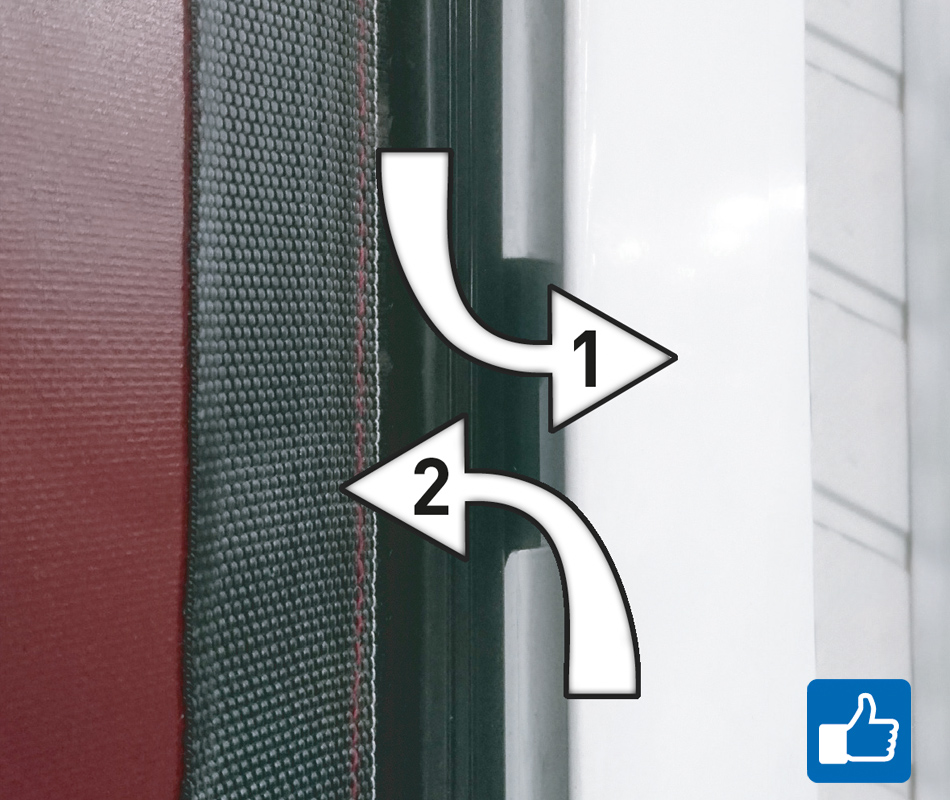 - SAMOZPRACOVÁNÍ: dveřní clona se po nárazu automaticky vrátí do vodicího prvku.