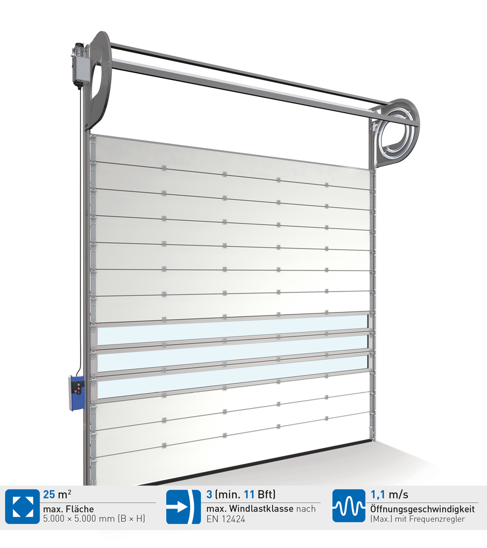 Technická data - Rychloběžná roletová vrata pro venkovní použití