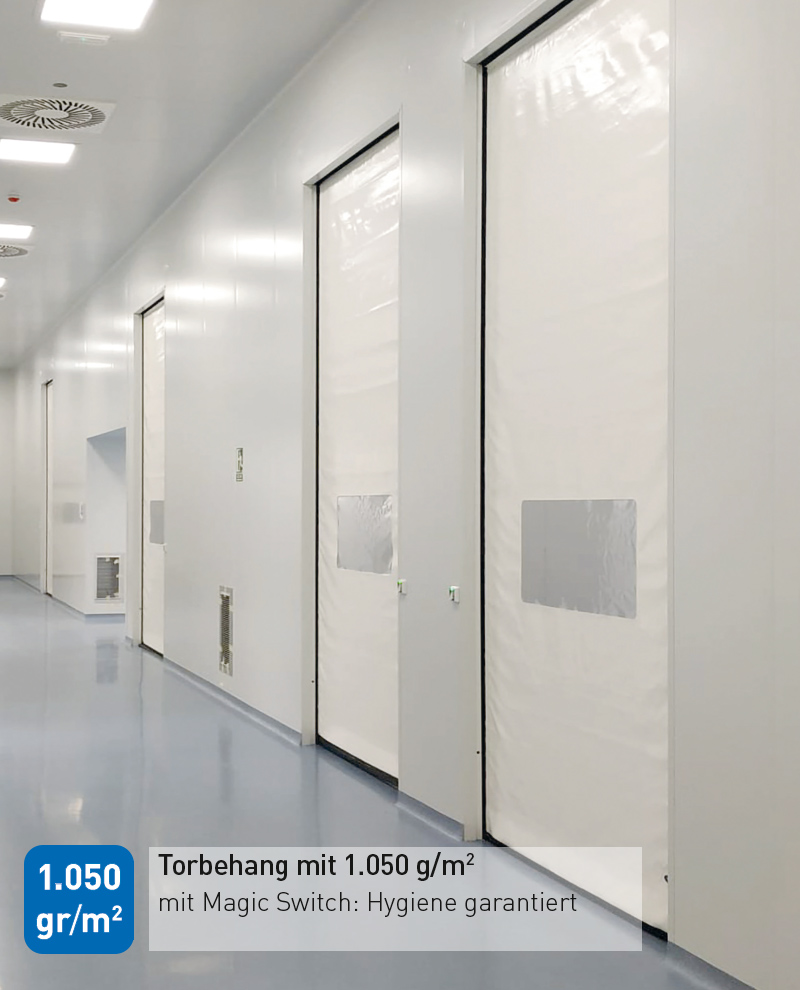 Volitelně je k dispozici bílý závěs na dveře s gramáží 1 050 g/m2.