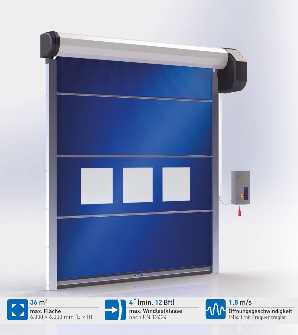 Rychlé otevírání umožňuje výraznou úsporu energie, stejně jako u vrat SpeedRoller.