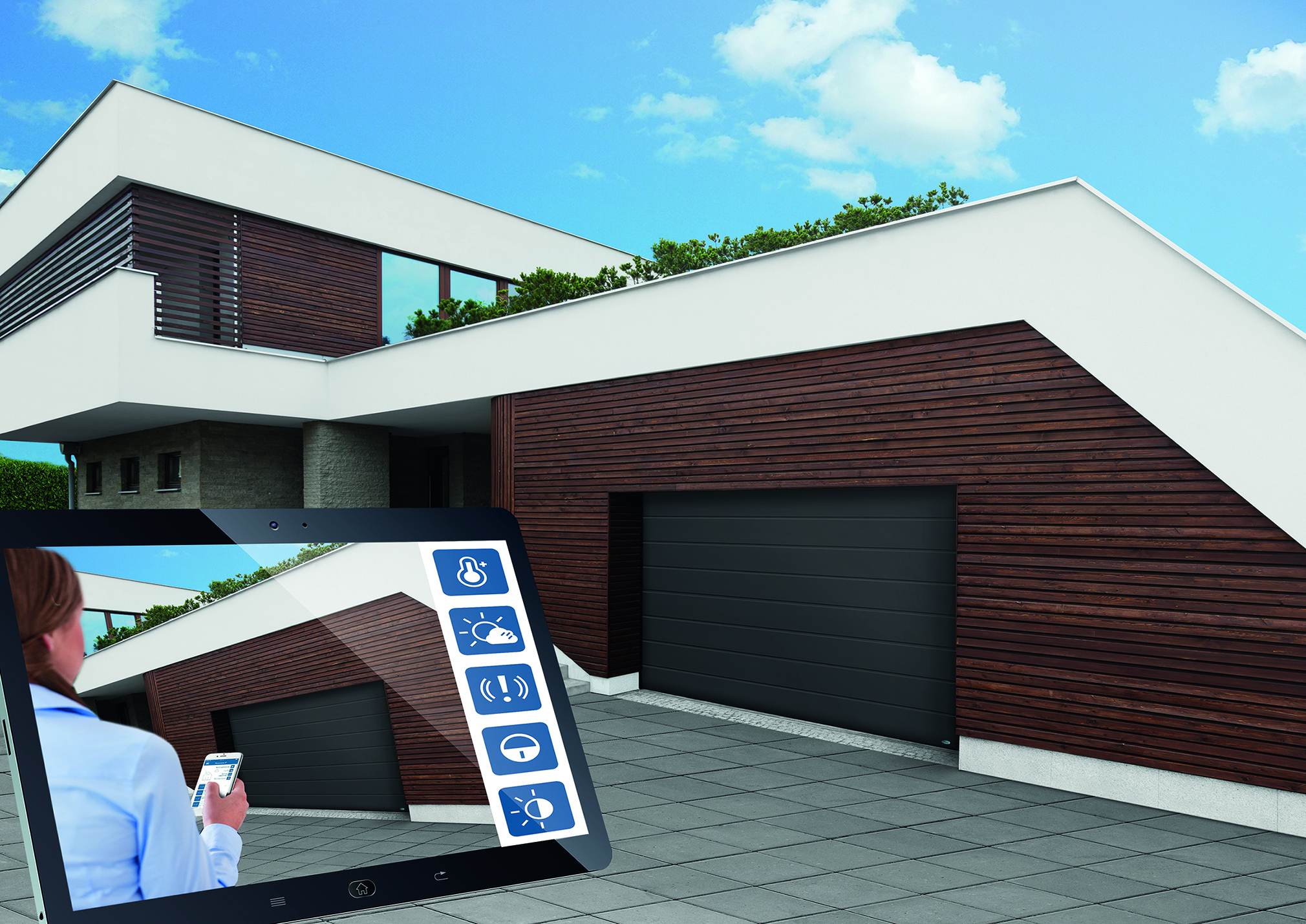 Digitální propojení pohonů NovofermGaráž se stává součástí každé SmartHome: jednoduchá, bezpečná, pohodlná a otevřená všem systémůmWerth, leden 2019. Internet věcí (IoT) změní nejen produkty a procesy ve firmách, ale slibuje také větší pohodlí a bezpečnost v domácnostech. Inteligentně řízené domácí spotřebiče, topné systémy, zabezpečovací systémy, rolety a vchodové dveře komunikují mezi sebou a s majiteli domů, čímž vytvářejí podmínky pro chytrý domov. Dochází k integraci garáže, konkrétně tzv. otevírání garážových vratje zřejmým a přirozeným doplňkem, zejména proto, že přední poskytovatelé, jako je například Novoferm, již nabízejí ovládání garážových vrat prostřednictvím aplikace. Novoferm proto na veletrhu BAU 2019 učiní rozhodující krok dále: všechna novější otevírání garážových vrat lze nyní integrovat s celou řadou jejich funkcí do centrálního řídicího systému prostřednictvím aplikace - přes aplikaci lze tedy ovládat každé garážové dveře.Sekční vrata od společnosti Novoferm se mohou stát "chytřejší" součástí inteligentně propojeného domu.