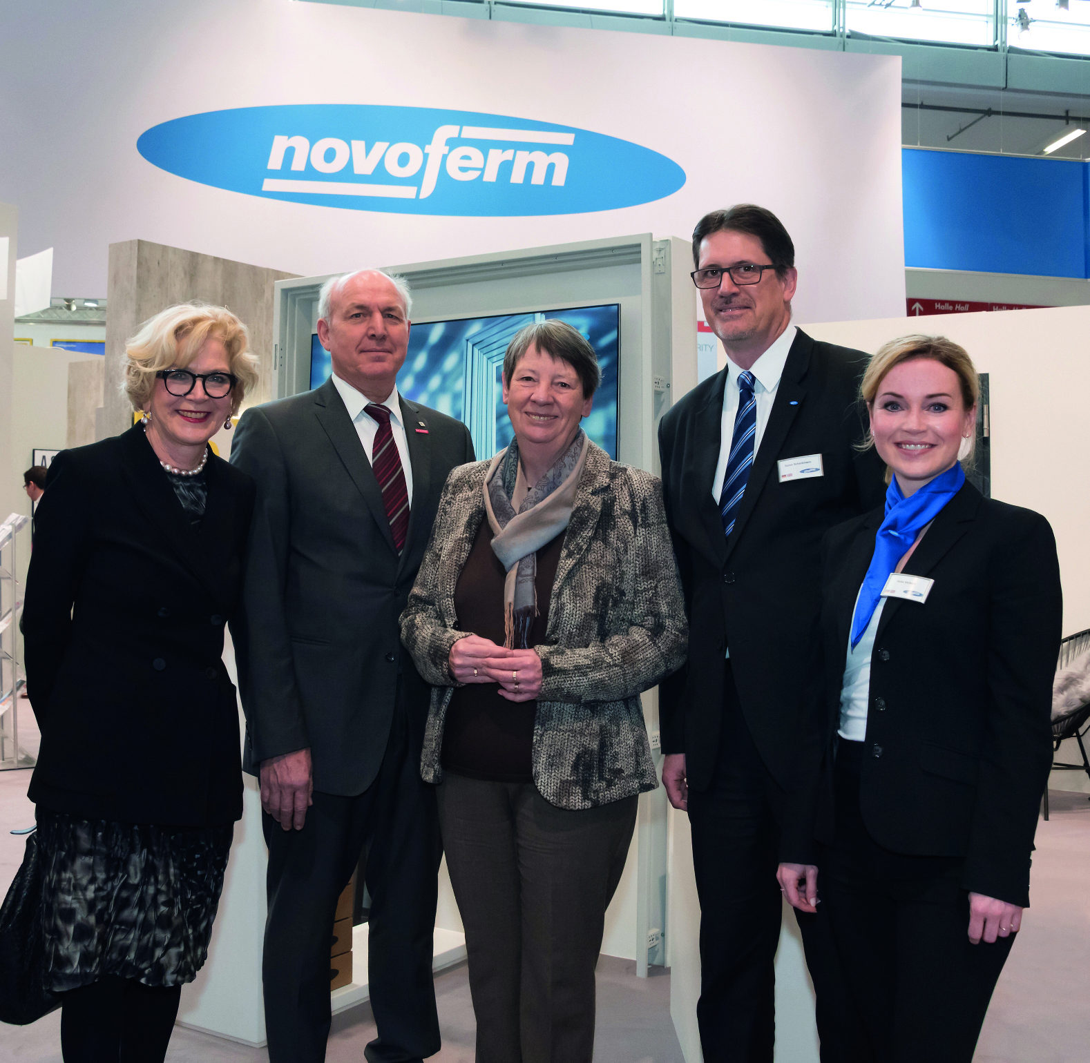Ministra Dr. Hendrickse přivítal a expozici o rozloze více než 820 m2 si prohlédl Rainer Schackmann, předseda představenstva společnosti Novoferm. Informoval ministra o velmi potěšujícím vývoji obchodu, protože na jedné straně roste poptávka v komerční výstavbě i u soukromých uživatelů a na druhé straně firma zaujme svými technickými a estetickými inovacemi a praktickými aplikacemi. Přímo na stánku Novoferm, který byl návštěvníkům přístupný ze všech stran, prezentoval ministrovi výrobky tým zhruba 80 zaměstnanců Novofermu v reálné instalační situaci - doslova praktické řešení, které ukazuje, jak mohou moderní řešení dveří a vrat přispět ke zlepšení kvality bydlení, města a života.
