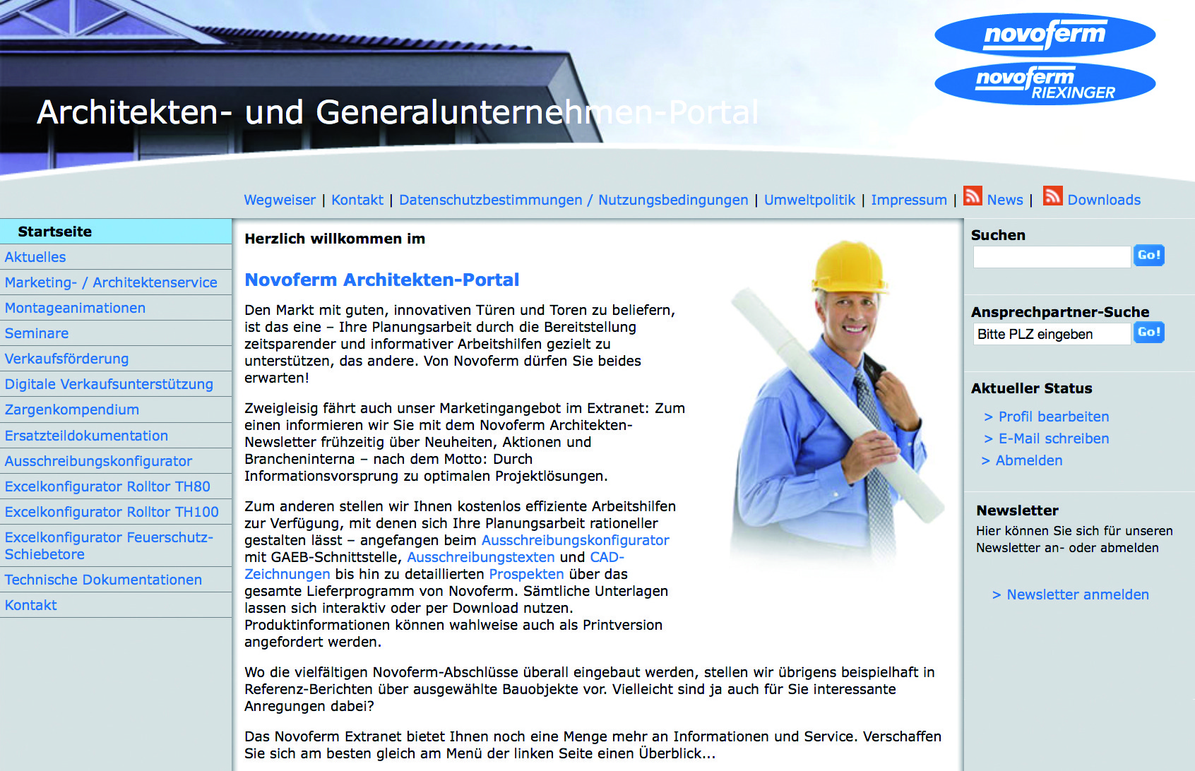Na veletrhu BAU v Mnichově nyní Novoferm, jeden z předních dodavatelů systémů bran, dveří, zárubní a pohonů, představuje další optimalizovanou verzi svého extranetu pro architekty a projektanty. Portál byl speciálně navržen pro tuto náročnou cílovou skupinu a nabízí širokou škálu informací a služeb pro profesionální plánování. Na trhu je o něj velký zájem. Tisíce uživatelů již využívají tuto výhodnou službu pro architekty.