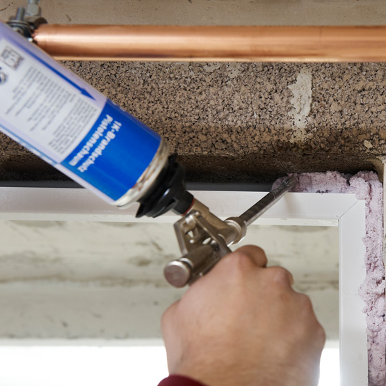 Mezera se poté zcela vyplní pěnou ve dvou fázích pomocí pěnové pistole: