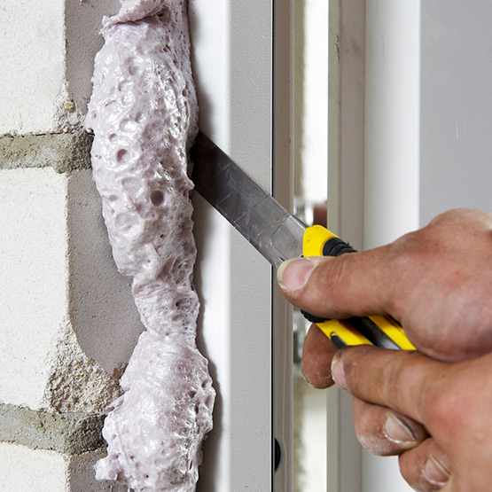 Vyčnívající pěna se po vytvrzení (min. 30 minut) jednoduše odstraní ostrým nožem nebo řezákem.