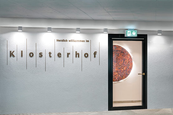 Zde se architekt rozhodl pro dveře od společnosti Novoferm, které nejen funkčně zapůsobí, ale také podpoří jeho designový koncept. Samotné požadavky na protipožární ochranu, vysvětluje Wolfang Scherer, již moderní architekti nevnímají jako nepříjemnou překážku; i když protipožární dveře mají samozřejmě vliv na projekční práce kvůli své hmotnosti a rozměrům. Na druhou stranu si uvědomuje další výhody moderních protipožárních dveří, které poskytují například také dodatečnou zvukovou izolaci nebo bezpečnost, případně mohou být odpovídajícím způsobem vybaveny. Pro Klosterhof se Scherer rozhodl pro výrobky společnosti Novoferm, jednoho z lídrů evropského trhu, a to jak pro dveře z ocelového plechu, tak pro dveře s filigránovým trubkovým rámem.