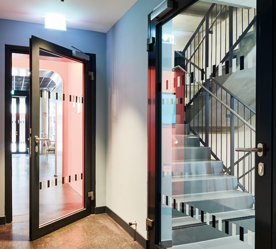 Tato multifunkčnost nastavila architektům vysoké standardy. Na jedné straně bylo cílem, aby propojení mezi prostory s různým využitím bylo atraktivní a lákavé, na druhé straně vzrostly požadavky na požární a protihlukovou ochranu vzhledem k velmi rozdílným typům využití. Tyto požadavky usnadnila řešení dveří od společnosti Novoferm, která architekti použili ve všech částech budovy. Výsledkem je reprezentativní, transparentní a funkční design, který díky protipožárním dveřím Novoferm nabízí nejvyšší standardy z hlediska designu a bezpečnosti.