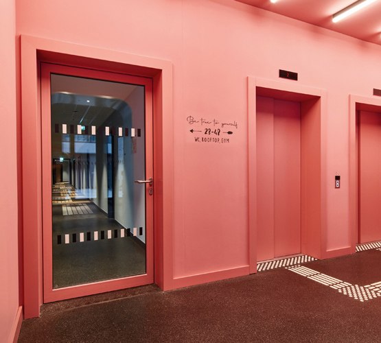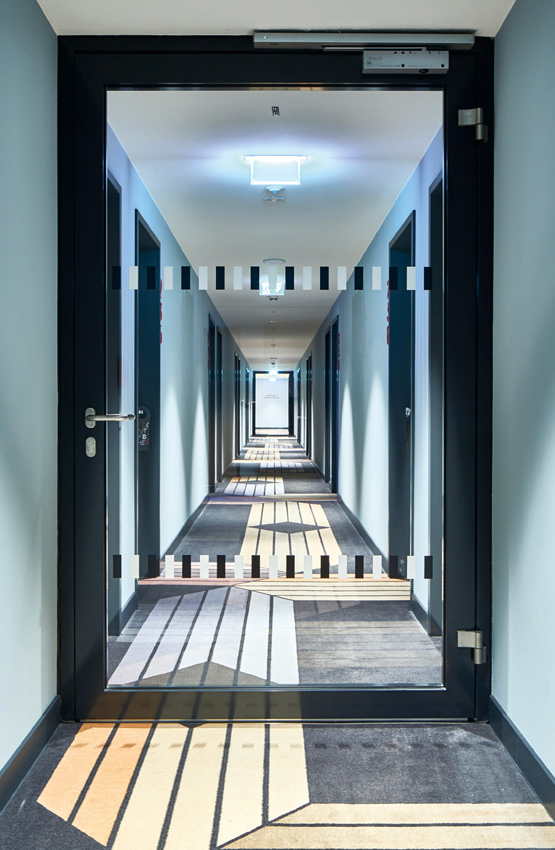 Je samozřejmé, že požární ochrana konstrukce byla optimálně začleněna do koncepce návrhu. Toho bylo dosaženo použitím protipožárních dveří od společnosti Novoferm v různých velikostech a provedeních. Na chodbách, chodbičkách a vstupech do hotelového parkoviště bylo instalováno celkem 34 dveří Novoferm s hliníkovým trubkovým rámem z řady NovoFire®. Jako kouřotěsné dveře RS a ve třídě požární odolnosti T30, s kompletním prosklením nebo výplní, a to jak jednokřídlé (některé s pevnou boční výplní), tak dvoukřídlé. Protipožární dveře zapadají do minimalistického designu hotelu, protože ve veřejných prostorách vlastně není žádný náznak protipožární ochrany v tradičním smyslu.