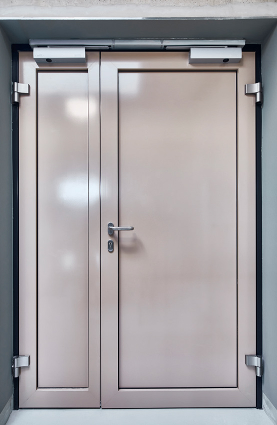 Harmonický vzhled dveří s trubkovým rámem dodaných společností Novoferm dotvářejí odpovídající zámky a kování, stejně jako horní zavírače dveří.