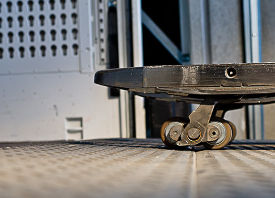 Podložka pod kola je důležitým bezpečnostním prvkem nového nájezdového systému. Nájezdový vyrovnávací můstek lze ovládat pouze v případě, že je klín kola v kontaktu s kolem a nákladní vozidlo je spolehlivě zajištěno proti nechtěnému odjetí.