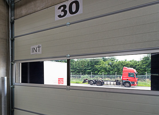 Tento "gordický uzel" protichůdných požadavků "rozetne" několik technických detailů na nakládacích jednotkách: Velká okna v bráně umožňují na první pohled vidět nebezpečný provoz před rampou. Nakládací lampy dobře osvětlují světelně těsné nástavby a zabraňují kolizím. Teprve když je nakládací můstek zasunutý, a je tedy volný, signalizuje vnější světelná signalizace, že nákladní vozidlo může odjet.