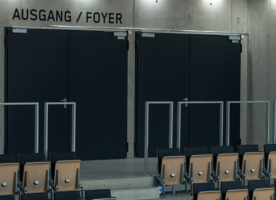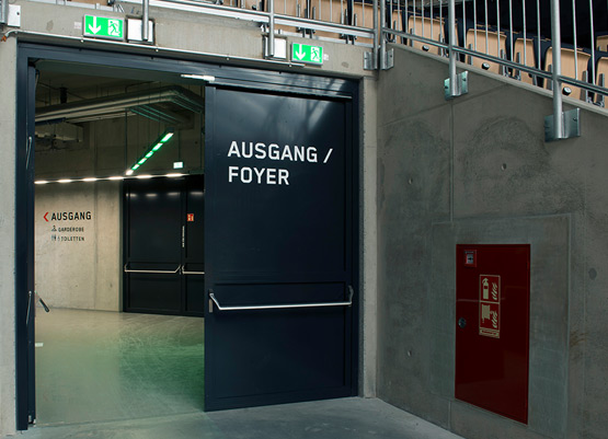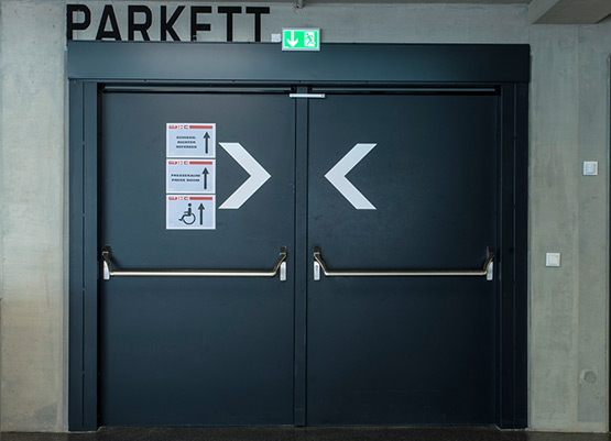 Jednou z konkrétních výzev zde bylo speciální řešení protipožárních dveří ve venkovním prostoru. Tam, kde se shromažďují tisíce lidí, musí únikové a záchranné cesty splňovat vysoké požadavky.